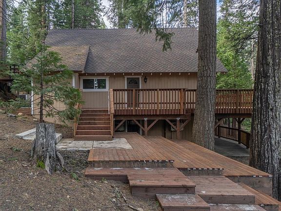 **Renovated from top to bottom!** Nestled within the picturesque landscape of Arnold/Dorington, this meticulously reconstructed home offers an unparalleled blend of modern luxury and rustic charm. Apache offers five spacious bedrooms, three full bathrooms, lots of storage, new roof, updated siding, decks, central heating and air, triple pained windows, the list goes on! This haven provides ample space for both relaxation and entertainment. The heart of the home lies in the gourmet kitchen, outfitted with top-of-the-line appliances, custom cabinetry, and quartz countertops. Downstairs, the full walk-out basement offers endless possibilities for recreation and relaxation. Whether it's a cozy movie or a lively game of billiards in the entertainment area, this versatile space caters to all your leisure needs. Step outside onto over 2000 square feet of decking, where the beauty of nature is presented with panoramic mountain views!Optional,annual HOA dues provide access to the Big Trees Association offering use to the pool, playground, tennis, Bocce ball and so much more! The residential lot next door is for sale as well to build another home or attached garage. This address is 3099 Apache Rd.