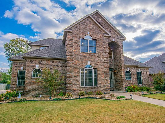Amazing Space in this 4 bedroom 3.5 bath home. Warm inviting home opens to formal dining room, grand stair case into living room containing a double sided fire place. Just beyond is the hearth room or additional den area, and kitchen with a feature wood slat ceiling, stainless appliances, 2 ovens, gas cooktop and breakfast bar and eat in kitchen. Large Primary suite contains sunken corner jetted tub, double vanity and walk in shower. Upstairs contains guest suite with private bath, and two additional bedrooms and full bath. All rooms have walk in closets. 3 car side load, garage, large driveway and a large backyard with additional storage building and a covered/uncovered patio. Additional features include: a central vac and built in safe Hidden under the stair case. Don't miss this great space and great location.