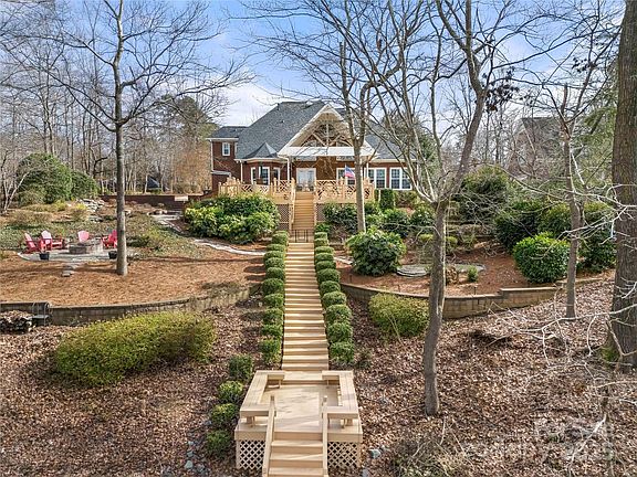 landscaping with water feature. Tons of exterior and interior spaces for year round entertaining or relaxing with friends and family. The open and elegant floor plan provides panoramic views of the lake. Partially covered rear tiered deck leads down to your own private dock where you can enjoy fishing, and boating. Two Story Great Room w/fp with tall flanking windows overlooking deck and lake. Completely remodeled kitchen with custom cabinets and quartz countertops, designer tiled backsplash, breakfast nook features butler's pantry area w/wine frig. Primary bedroom on main w/ensuite and 3 additional bedrooms upstairs, Lrg home office/den. Hardwood floors throughout Home feature tons of storage. Irrigation system Drip sys front and rear. Exceptional quality and workmanship throughout. NO HOA! Roof 2024, Dock floats 2021, dehumid 2020 Deck to dock 2025, HVE plug