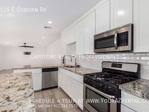 Nestled in the heart of the Biltmore Corridor, this single-story 3 bed 2 bath home offers the perfect blend of comfort and convenience. Just steps away from world-class shopping and dining, you'll enjoy the best of both worlds. Inside, discover an open floor plan that seamlessly connects the living room and kitchen. The modern kitchen features sleek white cabinets, a subway tile backsplash, and granite countertops. A stainless steel appliance package and a convenient eat-in island complete the space. The master suite is a true retreat, boasting a spacious bedroom, a beautiful en-suite bathroom with dual vanities, an oversized walk-in shower, and a generous walk-in closet. Outside, a huge fully fenced backyard provides a private oasis for relaxation. Enjoy the shade of a mature tree while entertaining guests or simply unwinding. Located close to shopping and dining, this home is worth checking out. Schedule a viewing today! -- Monthly Rental Tax Rate: 2.3% Monthly Tenant Benefit Package: $49.99 Security Deposit: Equal to one months rent Refundable Cleaning Deposit: $275.00 Refundable Pet Deposit: $200.00 per pet Carbon Monoxide Detectors Dryer Irrigation System Smoke Detectors Washer