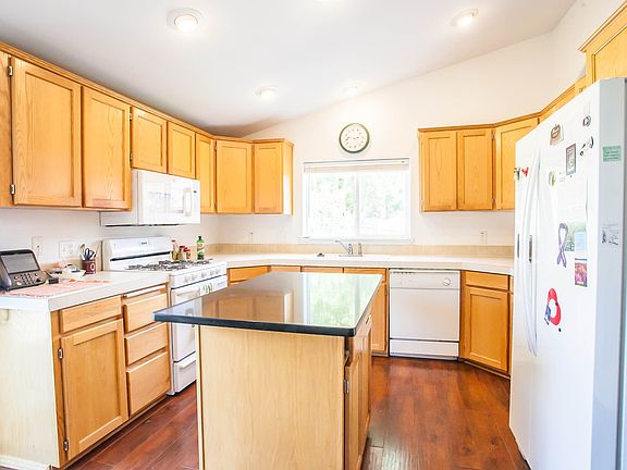 Step outside into your fully landscaped backyard, where the lush green grass and mature plantings create a tranquil and private oasis. Sliding doors from the kitchen lead to a lovely patio a fantastic spot for grilling and enjoying meals outdoors. Just around the corner, you'll find a relaxing hot tub, perfect for unwinding after a long day. And with an orchard along the back property line, you'll enjoy a picturesque backdrop and a peaceful, natural setting.