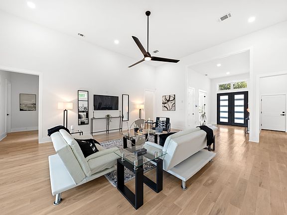 Step into unmatched elegance with this brand new 3,210 sqft masterpiece, offering 4,121 sq ft under roof space. Nestled on over half an acre, this stunning stucco residence blends modern spohistication with timeless comfort. Inside, soaring 14ft ceilings in living area with 12ft ceilings throughout and rich five inch white oak wood floors create a grand, open concept living space, perfect for both entertaining and everyday living. The chef's dream kitchen features modern cabinets with quartz counters and marble back splash and a layout that inspires culinary creativity. This home boasts 3 spacious bedrooms, 3 and half baths, and a dedicated office that easily converts to a 4th bedroom. The primary suite is a true retreat with serene backyard views, a spa like bath with a soaking tub, walk in shower, dual sinks, and a custom walk-in closet with custom built ins. A second private suite offers comfort for guest or extended family. Additional highlights include a welcoming foyer stylish powder room, functional mudroom, fully fenced yard with sprinkler system and an oversized 2 car garage with workshop space. Every detail, from the custom finishes to the throughout layout, reflects quality and craftsmanship. This home is more than a place to live, it's great for entertaining. Beautiful backyard with outdoor kitchen and covered patio.