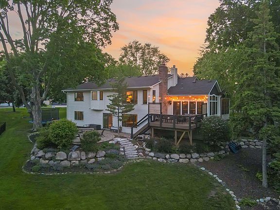 Modern Minnetonka Beach Home with Deeded Boat Slip, Lake Views & Incredible Outdoor Living. This standout Minnetonka Beach home offers the perfect blend of modern updates, spacious living, and access to the best of Lake Minnetonka—all in a family-friendly neighborhood known for its strong community and award-winning Orono Schools. Set on a private, wooded half-acre corner lot, the property features mature trees, multiple garden beds, and low-voltage landscape lighting that creates a warm, welcoming vibe day and night. The backyard is a true retreat, with an expanded Trex deck, cable railings, and privacy panels overlooking a lush lawn, firepit, and year-round views of the lake. Inside, the home impresses with vaulted ceilings in the kitchen, living room, and screened porch. The kitchen was remodeled in 2023 and features all new appliances—including double ovens and a beverage fridge—plus a large center island that flows into the vaulted great room. It’s built for entertaining and everyday living. Just off the kitchen, the three-season screened porch with EZ-Breeze 4-track stacking windows offers another space to relax or entertain, surrounded by trees and gardens. On the lower level, enjoy a full movie theater, home gym, wet bar, game area, and walk-out access to the paver patio and backyard. There are four bedrooms total—two en suite bedrooms upstairs with large walk-in closets, and two additional bedrooms on the lower level. Storage is generous throughout the home. A major highlight: deeded access to a 32-ft covered boat slip in the private, gated neighborhood marina directly across the street. It’s easily accessed via a wooded trail from the backyard or a quick drive or golf cart ride to the private parking area. The neighborhood also offers a private park with pickleball, tennis, and basketball courts. Families will love the convenience of the school bus stop for all Orono grade levels directly across the street, and the invisible fence is already installed for pets. Walk to the Dakota Rail Trail, Navarre Lunds, Culver’s, the local hardware store, and the Lafayette Club. You’re minutes from great restaurants, shopping, and everything Lake Minnetonka has to offer. This home is truly one-of-a-kind and needs to be seen in person to appreciate the lifestyle it offers. Schedule your private tour today.