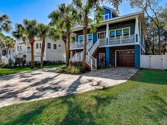 Welcome home to this amazing custom built Key West Style Home! The discerning buyer will recognize that no expense has been spared on this one of a kind masterpiece. This home offers 4 bedroom, 3 bath, 4 car garage located in the quiet town of Oldsmar. As you pull up you'll appreciate the pavered drive, ample parking and high end exterior finishes. The gorgeous front porch is the ideal place to drink your coffee and watch the sunsets. When you enter the home you'll love the open floor-plan featuring soaring coffered ceilings, amazing hardwood floors and custom lighting fixtures. The kitchen is a chef's dream with its massive island, granite countertops, hardwood cabinets, stainless steel appliances, tile backsplash and closet pantry. The master bedroom is adjacent to the living area and has a walk-in custom closet with en-suite bathroom featuring double sinks, granite countertops, tile flooring, glass enclosed shower and the most amazing bathtub. Also, on the main living floor you'll find two ample sized guest bedrooms and a shared full bath. Upstairs you'll find a spacious private suite with its own full bathroom, tons of storage and a light and bright adjacent loft area. On the ground floor you'll find a huge garage/workshop area which may be perfect for a future in-law suite, workout area and/or game room The home sits on a very spacious lot, offering privacy, ample storage for your boat and/or RV and plenty of room for a future pool. The huge fenced-in yard is perfect for the pets to romp and/or siblings to play. As an added bonus this home is elevator ready with a built in shaft! Home also comes with a fully functional solar system and no HOA fees or restrictions. This home is conveniently located near parks, beaches, fishing piers, tennis, basketball courts, zip lines, kayak trails, shopping, restaurants & so much more. Schedule a private showing today!