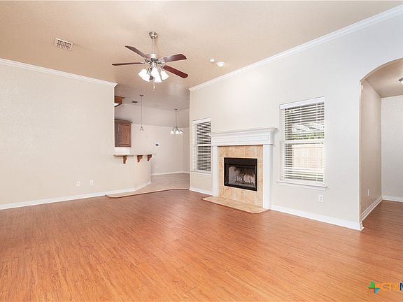 NEW KITCHEN UPDATES!! Kitchen backsplash, countertops, and sink have all been updated August 2025. Walking distance to Chisholm park and Belton schools! Located on a quiet cul-de-sac in Dawson Ranch, this adorable 3 bedroom, 2 bathroom home features all solid surface flooring, a HUGE private backyard with oversized back porch and pergola, spit bedroom plan, ceiling fans in every bedroom, and solar panels.