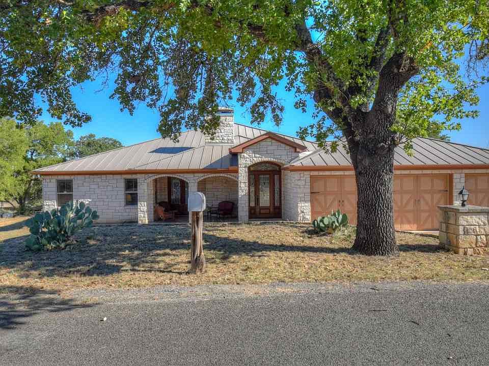 Custom single-story home on 1.64 acres in the coveted subdivision of Oak Ridge Estates in Horseshoe Bay, Texas. Large GREAT ROOM with beautiful hardwood floors in the spacious living, dining, and kitchen areas. The island kitchen features custom wood cabinets, granite counter tops, dry bar for buffets or another prep area, wall oven, microwave oven, separate warming oven, dishwasher and PLENTY OF STORAGE. The bedrooms are split with the primary bedroom, generous double vanity bathroom with walk-in shower, separate tub, private commode room, and HUGE closet on one side of the house and the other bedrooms and office with safe room on the other side of the house. The dream garage accommodates parking 4 cars (or parking 3 cars plus a boat or a golf cart) and has a sink. The neighborhood boat ramp on Lake LBJ is less than a mile from the house. Terrific location. A wonderful place to call home.