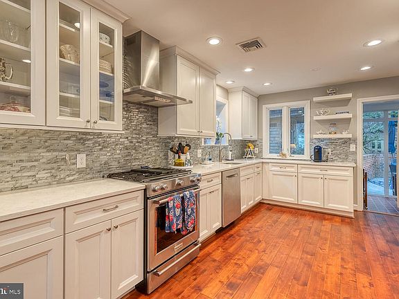Renovated and updated from top to bottom, this sunny Colonial offers large windows throughout and gleaming, new hardwood floors on the main and upper levels! Fully renovated spacious eat-in kitchen with granite counters, gorgeous glass tile backsplash, stainless steel appliances, and built-in corner bench! Living room with contemporary gas fireplace and recessed lights. Separate dining room/sunroom with floor-to-ceiling windows and sliding doors that open to patio and scenic backyard. Office with bay window and half-bath complete the main level. Upper-level features 3 bedrooms, including a spacious primary bedroom and fully updated hall bath! The lower level offers an expansive recreation room, 4th bedroom, full bath, and laundry room. Extensive hardscaping and landscaping include a patio, terraced backyard with a pergola, a plethora of plants and flowers, and custom lighting! Hot tub conveys! Conveniently located near parks, schools, and grocery stores. Minutes to restaurants and shops in Del Ray, Old Town, Shirlington, and Pentagon City! Easy access to commuter routes (395), Alexandria VRE station, and a quick jaunt to the Metro bus stop.
