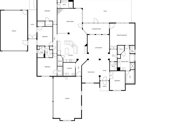 Charming, well maintained ranch-style home with space to spare; offering the perfect blend of comfort & functionality. Featuring 2 spacious living areas, dining room, a dedicated office, Large kitchen with island, bar seating & walk-in pantry. Ideal for entertaining & everyday living. Roomy screened in porch, extended concrete patio with privacy fence makes for a serene oasis in any season. Isolated owners retreat with spa-like bath, separate shower & tub. Three additional bedrooms w/ 2 full baths. Enjoy the fresh feel of new paint throughout, adding bright & modern touch to all rooms. Outside, a rare 5-car garage provides ample storage & workspace for vehicles, hobbies, or extra belongings.