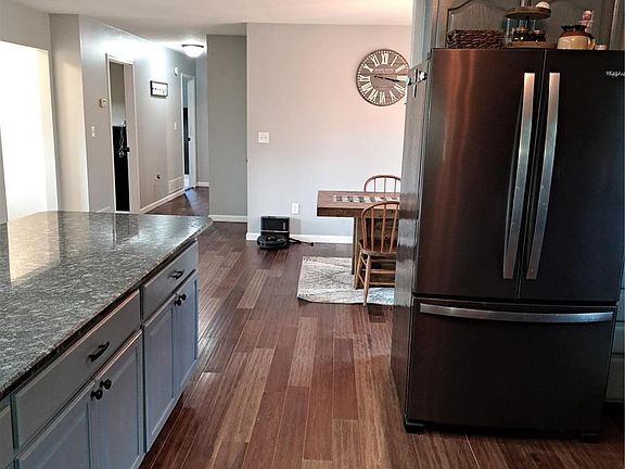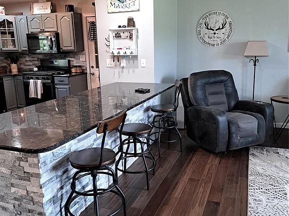 Nestled on approximately 2.75 acres in a beautiful country setting, this 1500 sq. ft. home on the main floor and 1400sq. ft. in the basment, features many updates. The main level offers an open floor plan with hardwood floors, a kitchen with stainless steel appliances, granite countertops, and a pantry. Enjoy the spacious living room and walk out from the dining room to a new 12x34 deck with stunning views. The primary bedroom includes a full bath with a walk-in shower. Two more bedrooms, a full bath, and a laundry room complete the main level. The refrigerator, stove, microwave, and washer/dryer can convey. The finished walk-out basement boasts a 4th bedroom, 3rd full bath, family room, rec room, and storage. The backyard is suitable for a pool. An oversized two-car garage with extra parking space outside completes this exceptional property. Come and see!