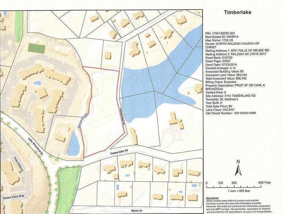 Gorgeous waterfront lot overlooking Marsh Creek. 4 acres of hardwoods, mostly in floodplain. Best use of property is one owner building on higher land near private road, overlooking the creek. Property is not in Timberlake Subdivision but owner should join to take advantage of private road and lakes in the neighborhood. A beautiful subdivision, not in the city, but so close to everything in Raleigh - an oasis! New owner must tap to city water and sewer. Estimate is $25,000 to $30,000.