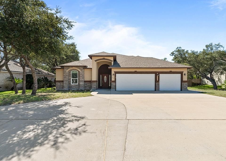 Located in the coveted Rockport Country Club, this beautiful home is priced below its recent appraised value and ready for its next owners! Offering 3 spacious bedrooms, 2 bathrooms, and a 3-car garage, this home impresses with its open layout and thoughtful details. Inside, you'll find beautiful tile flooring throughout, modern finishes, and soaring ceilings. The entry leads to two guest bedrooms and a full bath on one side, and a roomy 3-car garage and the laundry room (washer and dryer included) on the other. The open-concept kitchen, dining, and living areas are perfect for entertaining—featuring stainless steel appliances, an oversized island, and exceptional storage space. Step out from the living room to a screened-in porch, ideal for morning coffee or relaxing evenings. The spacious primary suite offers a luxurious ensuite bath with a separate tub, walk-in shower, double vanity, and a custom walk-in closet with built-in cabinetry. The large backyard is shaded by oak trees and features a gated concrete walkway for easy access from the front. Enjoy easy access to all the amenities and lifestyle perks of Rockport Country Club. Some photos include virtual staging. Don't miss this incredible opportunity—priced to sell and move-in ready!