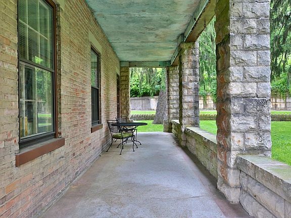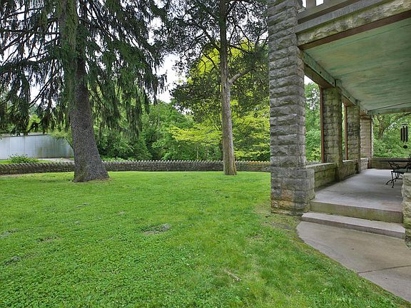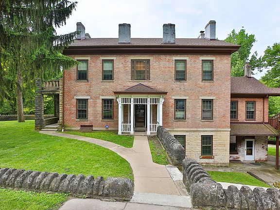 Home has recently had approximately $60,000 in updates from landscaping to painting and drywall. Over 7 acres of secluded and private get-away features a rich history and 150+ year old property and buildings. Huge potential for this gem as it boasts a main house with 5 total levels, a four-story guest house ready for full restoration, two smaller barns and a huge three-story bank barn full of oak and walnut. The barn bottom floor has a cooling room carved into the cliff wall on which it is built. A stream runs along the western edge of this park like setting bounded on two sides by limestone cliffs. Paths and concrete table and bench enhance the park-like feel of this property. Cherry library with an office attached and the home also features matching cherry cabinets.