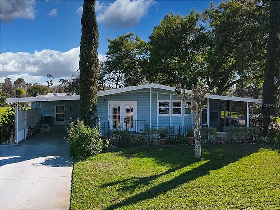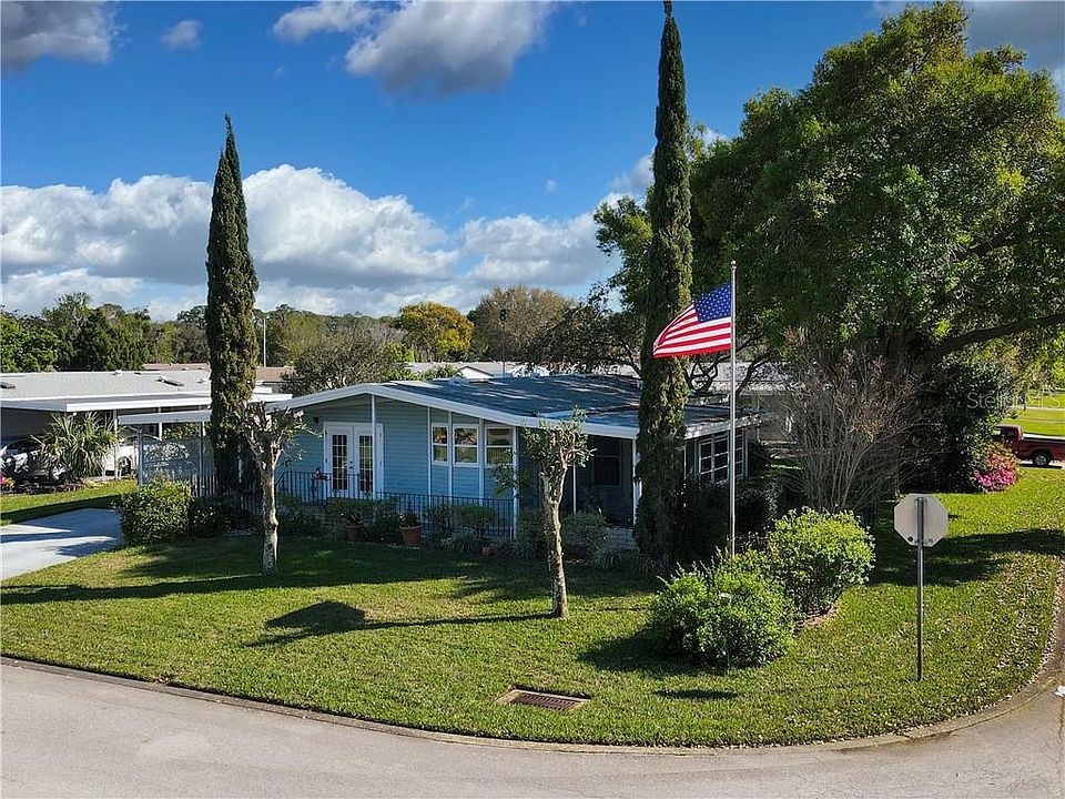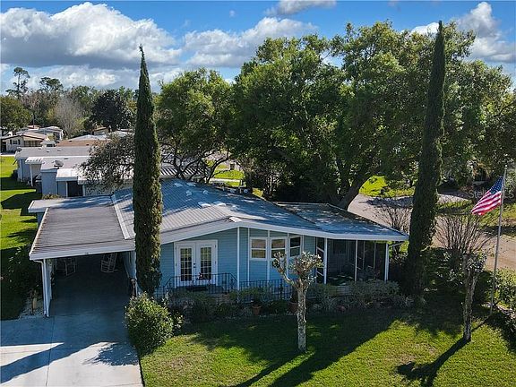 Come and see this beautiful corner lot, renovated home with many upgrades that is Move in Ready! Open floor plan with vaulted ceilings. New laminate flooring throughout. Large kitchen with plenty of storage. New stainless-steel appliances. Large Living room dining room combined. Extra-large master bedroom. High end master bathroom with tile, jacuzzi tub and double doors. Double sinks, separate shower, newer toilet. Oversized guest bedroom. Inside laundry room with built in desk and closet. Spacious utility shed/workshop. Extra-long driveway that can park 4 cars and a golf cart. Antenna TV that includes about 60 channels at no cost. Manicured lawn, beautiful trees to include fruit trees (blueberries and avocados). Low HOA of $60 a month. Harris Chain of Lakes community with marina Boat slips and a boat ramp leading out to Lake Harris. 55+ community with two pools club house and lots of activities. Schedule an appointment now.