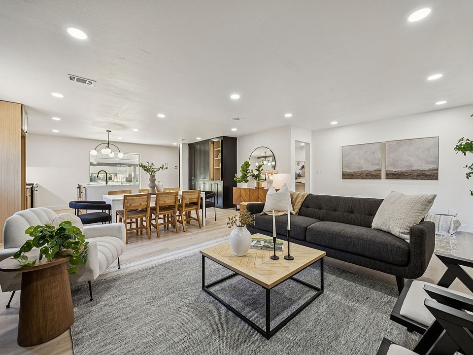 With 4 spacious bedrooms and 2.5 sleek baths, this 2,344 square-foot home is perfect for both everyday living and entertaining guests. The open concept layout features a welcoming living room with a cozy gas fireplace, flowing effortlessly into a chef’s kitchen outfitted with stunning quartz countertops, custom built-ins, and brand-new stainless steel appliances and so much light. A handy mudroom utility adds convenience and practicality.