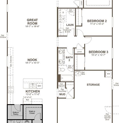 Highlights of the impressive Raleigh plan include an open dining area, a great room with center-meet doors leading onto a relaxing covered patio, and a thoughtfully designed kitchen with a walk-in pantry. You'll also appreciate a central laundry and three generous bedrooms, including a stunning primary suite showcasing a spacious walk-in closet and a private bath with double sinks. This home also includes a guest suite with a guest bath. Garage storage is included. You'll love our professionally curated fixtures and finishes