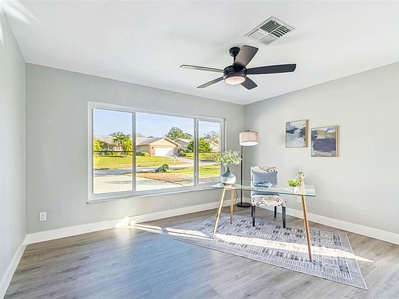Welcome to Florida with this beautifully remodeled home that offers nearly 1700 square feet of stunning living space. This home was thoughtfully reimagined with Florida living in mind. The Springfield plan features front living with a new flex space that can be a third bedroom, den, office, game room, or whatever suits your needs. The open concept kitchen offers a wide quartz counter/bar adjacent to a cozy family room, dining and sitting area for all family gatherings...an entertainers dream. Brand new appliances and an envious walk-in pantry to store all large appliances, food and household supplies. Sliding doors lead to a screened lanai...true indoor/outdoor living at it's best. The backyard has space for more patio & the possibility of privacy landscaping an opportunity to create your own outdoor oasis. The spacious primary suite has been remodeled with dual sink vanity, a walk-in closet plus a dressing area with room for a second closet. There is a third bedroom next to a gorgeous second bathroom. A coveted inside laundry room has a utility sink and access to the garage. There is generous closet space and the garage is large enough for two mid-sized cars and a golf cart. This property is WORRY FREE with new hurricane impact windows, new roof 2025, air conditioner 2023, and hot water heater 2018. Brunswick Circle is one of the nicest streets in the highly sought after Highland Lakes community. Highland Lakes is Palm Harbor's premier 55+ golf and lakefront community. It boasts a friendly country club atmosphere with well maintained grounds & facilities. The HOA fee of just $164 a month includes free golf on 3 private executive courses, tennis, pickleball, bocce, and shuffleboard courts, a huge heated pool and spa, a large clubhouse with a busy schedule of performing arts and social events, exercise classes, a lodge on Lake Tarpon with a private boat ramp, fishing pier, community pontoon boats, and 2nd heated pool, and free RV or boat storage in a secure lot. Highland Lakes is a golf cart community, eliminating the need for two mid-sized cars for many couples and there's room in the garage for a golf cart too. Highland Lakes is blissfully close to Gulf beaches, a wealth of stores and restaurants, excellent medical services, exciting pro sports, rich cultural resources, 2 international airports, and a cruise port. With an unusually high elevation, it is above the flood plain and is even a non-evacuation zone. Your best Florida life is ready and waiting for you right here in this beautiful MOVE IN READY home.