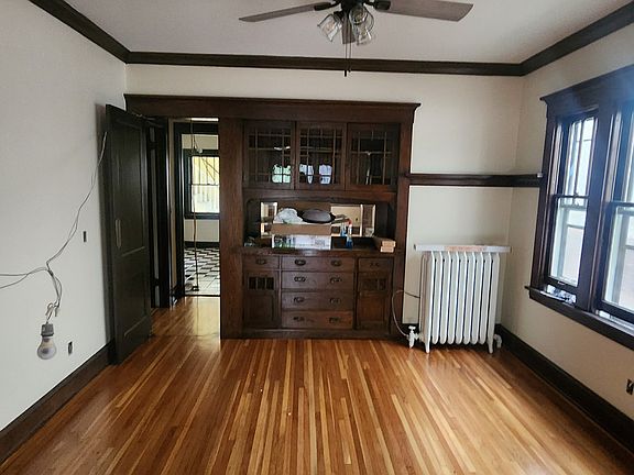 Hardwood floorsFreshly polished hardwood floorsBuilt in hutchBack patio areaBeautiful wood trimStorage locker in basementGood closet space