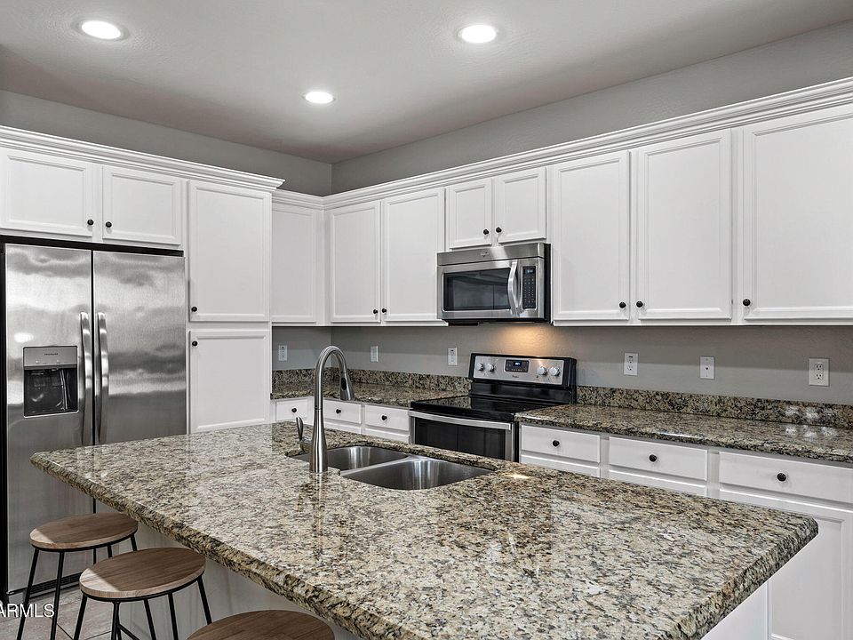 Located in the sought-after gated community of Lehi Crossing, this well-cared-for home features a brand-new AC, freshly painted exterior, a double-door office for privacy and convenience, and easy-to-maintain landscaping. The open floor plan seamlessly connects the spaces, making it perfect for entertaining or relaxing. The kitchen boasts elegant white cabinets, a large island, granite countertops, and stainless-steel appliances. With a split floor plan, the spacious primary suite offers a private retreat. The backyard includes a covered patio, mature trees, and lush greenery. Plus, the three large overhead storage racks in the garage provide plenty of room to keep things organized. This home perfectly blends charm and functionality. residence is strategically located near shopping, dining, and convenient freeway 202 access. This home embodies the essence of a remarkable family residence, offering a harmonious blend of style and functionality in a prime location.