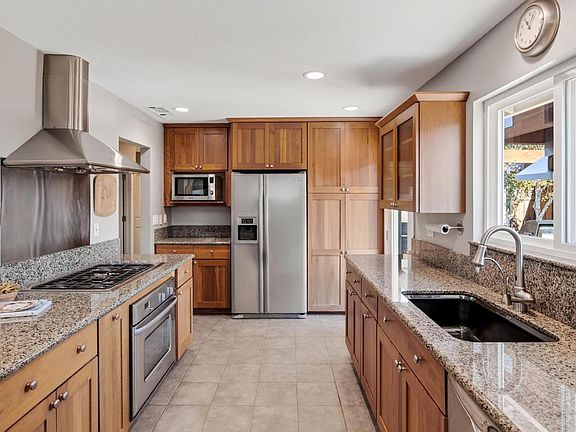Many fruit treesLovely peaceful fountainProfessionally landscaped lotWarm designer colorsRaised garden bedBeautifully updated bathroomsStainless-steel appliances