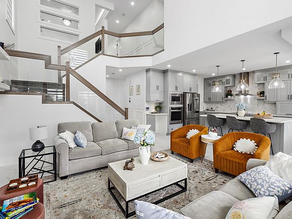 Welcome to this stunning 2021 custom-built home in the vibrant community of Keswick, perfectly situated on a wide 42-pocket lot and featuring a TRIPLE CAR GARAGE with exposed aggregate concrete. It offers 4 bedrooms and 4 full bathrooms, including a main floor bedroom with a full bath. The open-to-above living room is bright and inviting, highlighted by a sleek feature fireplace. The upgraded kitchen offers built-in appliances and a convenient spice kitchen. Enjoy 9-ft ceilings on all three levels, 8-ft doors, elegant tile flooring on the main, luxury vinyl upstairs, and carpet only on the stairs. Other highlights include glass railings, a spacious bonus room, and a well-appointed laundry area with sink and cabinetry. Built with thoughtful details and premium finishes, this home features stucco siding, a back deck, and a low-maintenance front yard. A separate side entrance leads to the unfinished basement, offering excellent future potential. Close to schools, parks, shopping, and all amenities!!