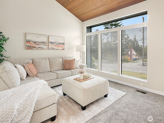 NW Contemporary, original beamed vaulted ceilings, AZ Stone fireplaces, light filled interiors & spacious rooms. Main level: New kitchen floors, cupboards, quartz & SS, walk-in pantry, laundry, & 1/2 bath. Entertain in the large dining w/built-ins + living & bonus rm that leads to 2 decks, patio, yard & gar entry. Upper level; 2 beds 1 bath + primary w/walk-in closet, private deck, bath w/shower. Lower level; kitchen, 1bd, 1bath, painted cement floors w/separate entrance. Outside; 80ft shed, 120sf spa house (many possibilities) easy alley access detached 675sf garage w/RV/boat bay, ideal for shop, storage, studio or future 3rd living (buyer to verify). Close to parks, shop, restaurants, school, transit. This home is turnkey w/room to grow.