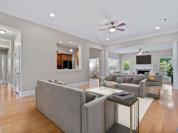Experience timeless elegance in this spacious 5-bedroom, 4-bath executive brick home, ideally located in the prestigious Arbor Woods neighborhood within Hampton Cove. Set on a beautifully maintained flat lot, this residence offers upscale finishes, a thoughtfully designed floor plan, and the perfect balance of comfort and sophistication. Step inside to find hardwood floors, detailed crown molding, and fresh designer paint throughout. The home features a welcoming great room, columned dining room, and a private office or study, perfect for today's lifestyle.