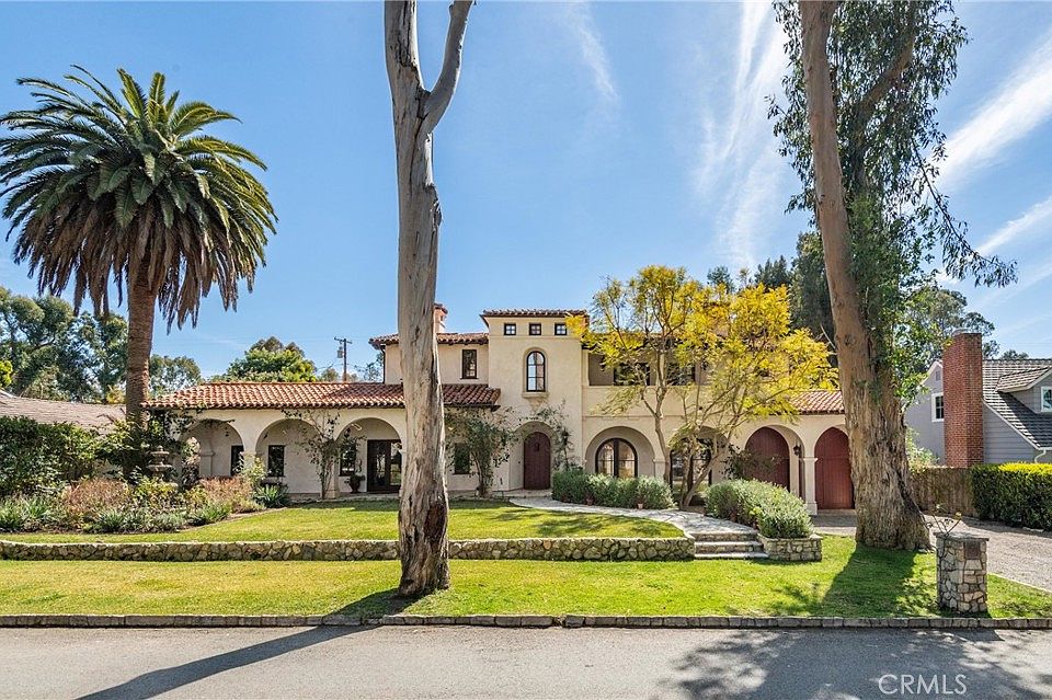This Stunning Hacienda situated on a double lot on one of the most desirable streets in Valmonte has abundant curb appeal and design charm. With 5,273-square-foot of living space, this hacienda-style residence is surrounded by lush lawns and tall, leafy trees. Its Spanish architectural influence is present from the outside in, with a tiled roof and exposed beam ceilings.