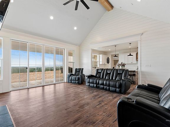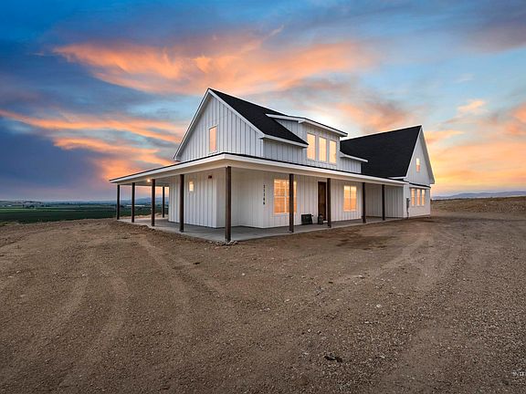Appt.Only Showing/Security Dogs MUST BE REMOVED. They DO BITE. Extraordinary 360° views are unobstructed, pure panoramic, undeveloped peacefulness. Up there has been described by family & friends as amazing, phenomenal, inspirational or many times just simply "WOW!" The wrap around covered porch is expansive & wide, perfect for all weather entertaining so you can enjoy them even on the warmest of days. Perched on the top & exposed, it’s also common to have a cool Idaho breeze even if it's calm down below. There are also open areas if you prefer to be in the sun or want to do some nighttime stargazing. House sits on 9.97 acres of rolling slopes affording you plenty of privacy, as the only home on this private street. Your south facing views are of the Owhyee Mountains & are seen from entire property, your primary awe comes from the all-encompassing farms surrounding you of hundreds & hundreds of acres of ‘Hops, Vineyards, Corn, Wheat’. Sweeping all the way around you, is your own true Private Idaho…100% Priceless