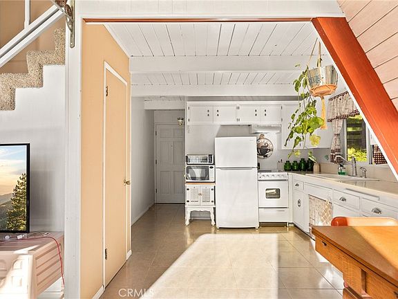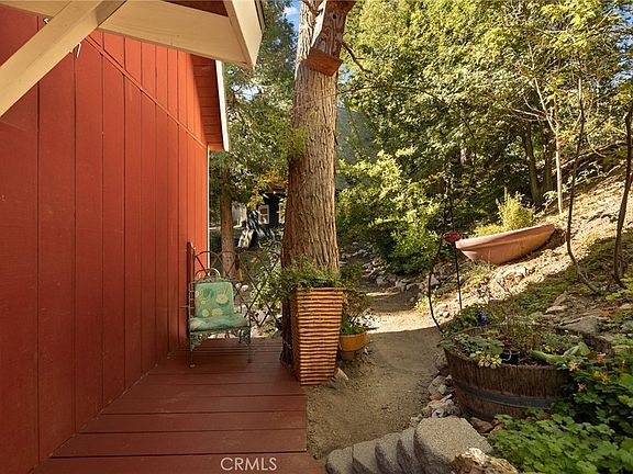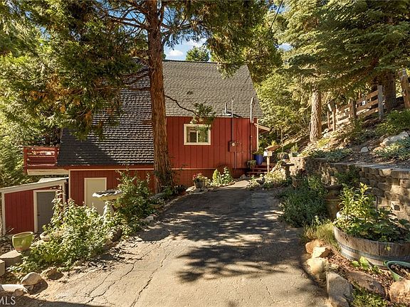 Adorable A-Frame surrounded by plants and fruit trees. The cottage kitchen is open to the dining and living room with vaulted ceilings and wood burning fireplace. Kitchen has portable washer/dryer available in closet. The large living room windows adorn the A-Frame and bring tons of sunlight into the cabin. Main level bedroom and full bath make up this level. The 2nd bedroom loft overlooks the living room w/ views of the trees. Sunny back deck area off the living room. Large build up area for those extra storage needs. Bonus workshop with laundry hookups. Enjoy the apple, peach, and cherry trees along with the flower garden areas surrounding the property. Off Street parking for several vehicles and great commuter location. Close to hiking trails and minutes to Snow Valley Mtn Ski Resort, making this mountain A-Frame the perfect getaway cottage.