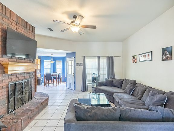 Clean and spacious home with big yards in the established Heritage Parks neighborhood of northeast Abilene. Close to Abilene Christian University, Hardin-Simmons and Hendrick Medical Center. The common areas have a semi-open floorplan. In the center of the large living room is a beautiful brick wood-burning fireplace with a wrap around hearth and mantel. There is a bay window in the dining area. Sip your morning tea in the enclosed porch with french doors and large windows overlooking the large grassy back yard with multiple mature shade trees and a storage shed. This home also offers a split bedroom layout, vaulted ceilings, ceiling fans throughout, carpeted bedrooms, a utility room and a lighted attached 2-car garage. The neighborhood is managed by the Heritage Parks HOA and is family friendly with lots of big trees.