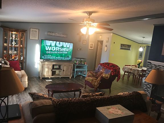 Enjoy this Updated Manufactured Home. W/ New LAMINATE Hardwoods in the living areas & CARPET in the bedrooms 18', New TILED SHOWER in Hall bathroom 19'. Home offers Split floor plan, Master bath w/GARDEN TUN & SEPARATE SHOWER, DOUBLE VANITY All bedrooms have huge WALK IN CLOSETS . Large living room with TILED WOOD BURNING FIREPLACE, Enjoy the outdoors on the FRONT PORCH or back DECK, Nestled on a little over 1 ACRE Detached Wired WORKSHOP seller offering WASHER, DRYER, & HOME WARRANTY!