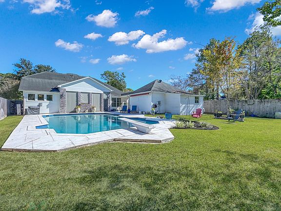 Resurfaced salt water poolGas fireplaceHuge backyardRemodeled bathsEngineered wood floorsHeated soaking tubBoardroom-style study