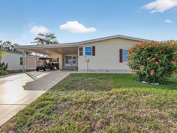 Well maintained, move in ready 2 bedroom 2 bath home with an exceptional layout. Located in the 55+ Popular Community of Fox Run. The spacious kitchen with plenty of light from the bay windows, cook top stove, ample cabinetry and a generous eat in area, almost makes it feel like a secondary dining room. Enjoy both a formal living room and dining room with built in lighted storage for your favorite china making this home perfect for entertaining. The primary suite offers two walk in closets and a private, tucked away en-suite bathroom with walk in shower. Additional highlights features skylights, inside laundry and a Florida room with plenty of room for your private office space. The home boost a large two-car carport and attached workshop/storage area all under roof. Conveniently located in a community offering a clubhouse, boat slips with direct access to Florida's Chain of Lakes. Perfect for the Snow Birds or year round living!