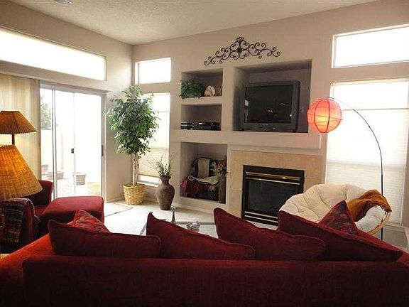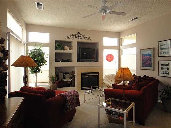 Enjoy carefree & secure lifestyle in THE RENAISSANCE. 2 bd/2ba Home w/tile Flring & counters. Pop of color in the lrg DR off the kitchen. Gas Log FP in well-lit LR. LRG Master in rear of home with a wall of closet space. BIG MBath shower w/ bench & a jetted tub for soaking. Front bedrm used as office w/ WIC & built-ins can stay. Lrg covered patio in Lo-Maintn bckyard. $50/mo in HOA fees inclds front yard maint. Inspect & Repairs Complete! All ages Community; Centrally located! Ready to go!