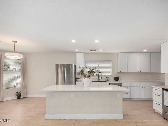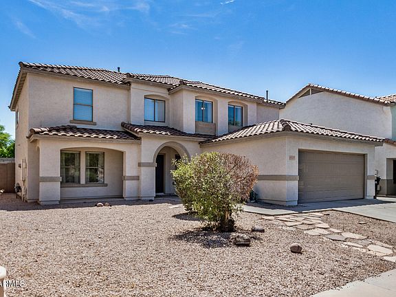 Stunning and spacious 4 bed, 3 bath plus loft in Arizona Skyline! This home offers a formal dining room, a second living area, and a large upstairs loft — ideal for a game room, home office, or media space. The kitchen features shaker cabinets, quartz countertops, stainless steel appliances, and a center island with breakfast bar. The primary suite includes a bay window, walk-in closet, and dual sinks in the ensuite bath. Enjoy a low-maintenance backyard with artificial turf, covered patio, and a fenced pool — perfect for summer!
