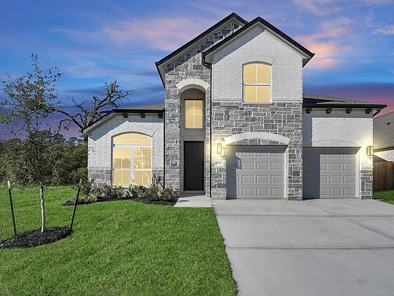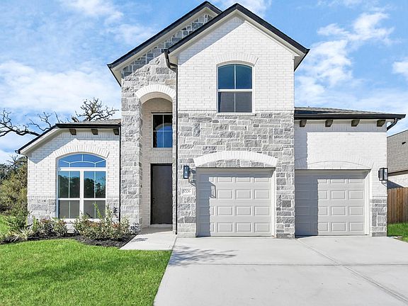 LONG LAKE NEW CONSTRUCTION - Welcome home to 3117 Skerne Spring Drive located in the community of Bradbury Forest and zoned to Spring ISD. This floor plan features 4 bedrooms, 3 full baths, 1 half bath, Office, Game Room, Media Room, and an attached 2-car garage. This beautiful 4-sided brick, 2 story home has a stone elevation. Additional features include circular staircase with metal balusters, covered rear patio with gas stub out, fireplace with wood mantel, freestanding tub with recessed shower in the primary bathroom, quartz countertops in kitchen as well as pendant and under cabinet lighting, ceiling fans in study, family room, game room, and all bedrooms, wood framed mirrors in bathrooms, wood beams in game room and dining room, and many more upgrades! You don't want to miss all this gorgeous home has to offer! Call to schedule your showing today!