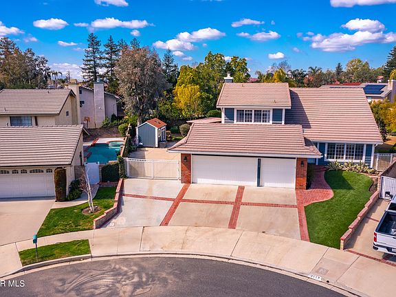 Welcome to this beautiful 4 bed/3 bath pool home located in a cul-de-sac in Central Simi with over 2500 sq ft that sits on an almost 13,000 sq ft lot! Properties like this one are hard to come by! Just look at the aerial photos of this gem and you will see it's like having your own private oasis-like resort! This home has a gorgeous upgraded kitchen with granite countertops, stainless steel appliances, custom island, and plenty of cabinets/counterspace. The kitchen opens to the family room which has a cozy remodeled decorative fireplace and custom cabinetry. The downstairs also has an indoor laundry room with new tile, a bathroom with shower, and a bedroom currently being used as an office/den, with new cabinets and countertops. Upstairs you will find a spacious primary bedroom with its own balcony (overlooking the amazing resort-like backyard) and a custom remodeled primary bathroom with dual vanity, tub, and a beautiful enlarged shower with marble-like tile and stone. Additional upgrades inside include new light fixtures, ceiling fans, and recessed lighting throughout. The backyard is truly an entertainer's dream with so much to offer! Covered patio w/TV and a custom BBQ area with smoker! Relax by your beautiful private sparkling pool and spa which has a new heater and remote technology for the system! Plenty of room for having large gatherings and inviting all your friends and family! Backyard also includes large side area with RV parking/ room for boat/toys etc and a storage shed! This property is truly one of a kind and not to be missed! Come see today!