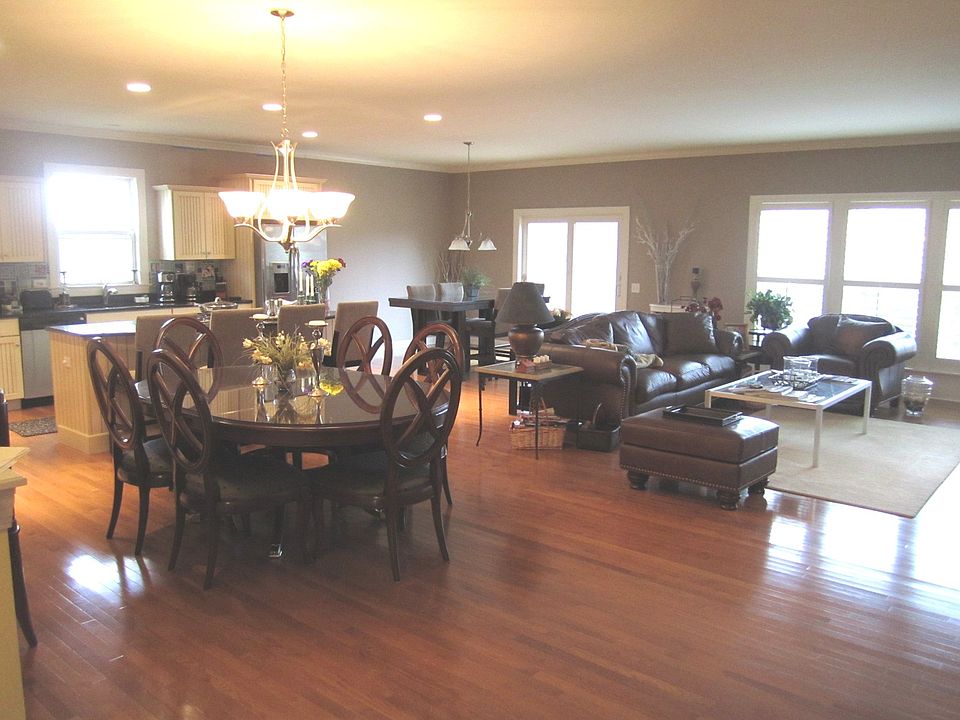 Gorgeous open floor plan with 9'' ceilings! Hardwood floors & crown molding throughout Great Room. Stainless steel appliances, plantation shutters-all the extras are there! Gas log fireplace. Master bedroom has private bath with double sink vanity & separate shower. Basement has huge rec room & 3rd bedroom with bath & still room for storage! Patio in backyard overlooks forest preserve with walking trails. Quiet setting!