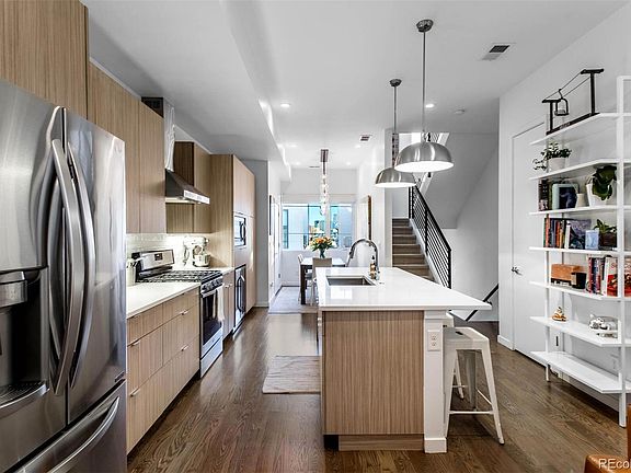 Upgraded row home close to Sloan's Lake and shops and restaurants. Upgraded expanded kitchen with wine refrigerator and lots of cabinets and storage. Owner fully finished the rooftop deck area with built-in fire pit, sitting and eating area and panoramic views of the mountains on the west and the city skyline on the east. Fabulous one-of-a-kind unit **No HOA but complex has management contract for landscape and snow removal at $100 per month per unit** Buyer must agree to cooperate with a 1031 tax-deferred exchange at no cost or liability to Buyer. Prefer February 1 closing date. Rough-in plumbing for 1/2 bath in entry level closet area.