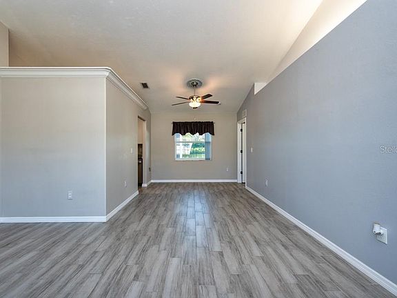 Come Home to Comfort, Style, and a Beautiful Pond View! Tucked away on a quiet cul-de-sac, this beautifully renovated 3-bedroom, 2-bath home offers 1,697 sq. ft. of comfortable living with a tranquil pond view you’ll love coming home to. Step inside and discover new tile flooring throughout and vaulted ceilings that create a bright, open feel across two inviting living spaces. One living area opens through glass sliding doors to a screened-in lanai, perfect for relaxing or entertaining while overlooking the peaceful water. The modern kitchen is a standout with new white shaker cabinets, marble countertops, a breakfast bar, garbage disposal, and newer stainless-steel appliances — a perfect blend of style and function. Retreat to the spacious master suite, featuring a large walk-in closet and a luxurious en-suite bath with a garden tub, marble vanity, linen closet, and corner shower. The second bedroom offers another walk-in closet and sits conveniently near the updated guest bath, which includes a tub/shower combo, vanity, linen closet, and direct access to the lanai. The third bedroom enjoys its own pond view and generous closet space. Additional highlights include a 2-car garage with washer/dryer hookups, a utility sink, overhead storage, and side yard access, plus a brand-new AC system installed in April 2024 for year-round comfort. With no CDD and a low HOA, this move-in-ready home delivers both peace and value. Whether you’re sipping coffee on the lanai or enjoying the pond views from inside, this property blends modern updates, natural beauty, and everyday convenience — a rare find you won’t want to miss! Call now! ***FREE 1/0 Rate Buy Down when using the seller's preferred lender!***
