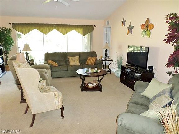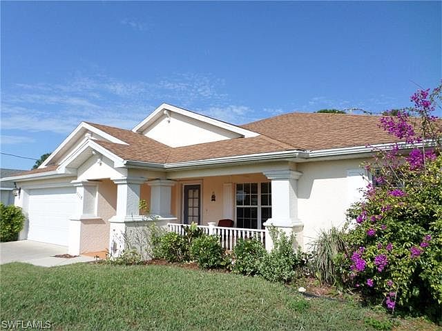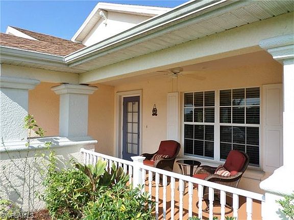 Tons of square footage plus a delightfully unusual floor plan to this Lehigh Acres Home! 3 Bedrooms PLUS a Den with French Doors in addition to a Bonus Home Office Area. Spacious Living Room with Cathedral Ceilings and Sliders out to the extended L-shaped screened Lanai, offering plenty of room to sit & relax plus additional outdoor Dining space. Formal Dining Area off the Living Room. Kitchen has Corian Counter tops, a Breakfast Bar plus a useful Pantry & Stylish Black Appliances. Separate Laundry Room with full size Washer & Dryer. Absolutely enormous Master Suite has lots of space for furniture plus a reading nook & even your treadmill/home gym equipment! The Walk in Closet is extra large. Master Bathroom has separate soaking tub, dual Vanity & walk in shower. 2 generous Guest Bedrooms, each with a full size closet. Guest Bathroom has Dual Vanity & a combination tub & shower. Large rear yard with more than enough room for a pool if you choose to add later. Attached 2 Car Garage. Sunny Front Porch too - a great place to sit & watch the world go by. Close to shopping, Dining & Entertainment and just a few minutes drive into Fort Myers for an easy commute. A must see home!