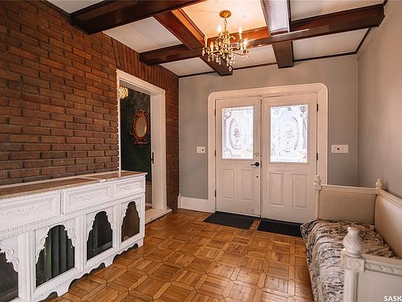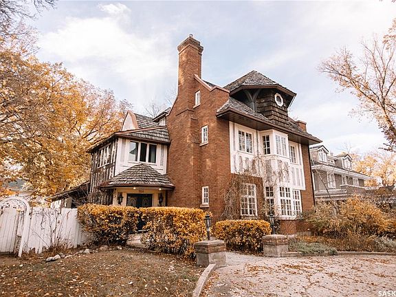 This remarkable 6-bedroom, 5-bathroom character home offers 3,795 sq. ft. of elegant living space, blending preserved 1913 architectural detail with extensive modern upgrades. Designed by renowned architect James Puntin for prominent Regina figure William Mason—eight-term city councillor and mayor from 1925–1926—this property stands as a true piece of Regina’s history. The double attached insulated garage offers rare dual access from both Albert Street and the back alley. Classic features such as stained glass windows, wainscoting, crown moldings, claw-foot tubs, and antique vanities are paired with high-end updates including marble flooring, new lighting, custom wallpaper, window treatments, smart home technology (August lock, smart video doorbell, Ecobee thermostat), and an upgraded 200 amp electrical panel. A large heated porch leads to an impressive reception hall with a stunning open staircase and ceiling feature. The main floor includes a spacious living room, formal dining room, an upgraded white kitchen with included appliances, a 2-pc powder room, and a 2023-renovated laundry room with washer and dryer included. The second level features three generous bedrooms, including a primary suite with a sitting room, sunroom, walk-in closet, and a newly developed 4-pc ensuite. The third floor offers two bedrooms, a 3-pc bath, a living room, and a kitchenette—all furniture and accessories included. The fully developed basement contains a large one-bedroom non-regulation suite with its own kitchen and 3-pc bath (furniture included), ideal for extra income, multigenerational living, or a nanny suite. Additional updates include a new boiler (2014) and spray foam insulation in key areas. Furniture on the main and second floors is negotiable, making this home truly move-in ready. A rare combination of history, character, and modern comfort, this property is one of Regina’s finest and most storied residences.