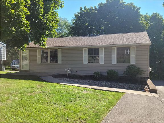 Welcome to this cozy 3-br ranch.Entire house was weatherized w/upgraded foam insulation & sealed(2016).It boasts laminate oak floors throughout. All bedrooms w/custom blackout shades(2019). New 1st flr shower(2018).Large master closet w/his & hers sides. Kitchen w/12" ceramic tile floors,oak cabinets w/desk,Bosch dishwasher(2018),Kenmore electric stove & french-door frig/freeze(2017),garbage disposal,& Delta faucet(2022). Undercabinet lighting w/remote(2022).Ring camera doorbell. Sliding glass door leads onto a Trex deck(no staining needed)w/stairs.Another door leads down to a fully finished carpeted basement, bath w/standup shower & seperate laundry room.Under basement cast-iron pipes replaced w/pvc. Networking lines left for simple internet set up.On basement level u have access to another sliding door onto a concrete patio & garage w/automatic opener. New paved driveway(2018).This quaint location on a no outlet street makes this a perfect place for children & pets.