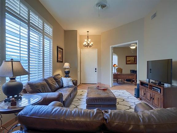 Single level gem in gated Estates community. 3 bedroom/2 bath open floor plan provides a flexible, comfortable living space featuring a 2-way fireplace between Family Room & Dining/Kitchen area. Updated Kitchen including stainless steel appliances, granite counter-tops and back splash. 12 ft ceilings with plantation shutters throughout, ceiling fans, & 2015 16-Seer HVAC, water softener, RO system to tap and refrigerator ice machine. New garage door and entire exterior painted in April 2019. Easy access to Mountain Park Ranch community amenities - pools, tennis courts, volleyball, BBQ grills, and abundant walking trails. Award winning Kyrene schools, easy access to freeways, restaurants, and all that the Foothills has to offer - a wonderful lifestyle afforded by this sought after community