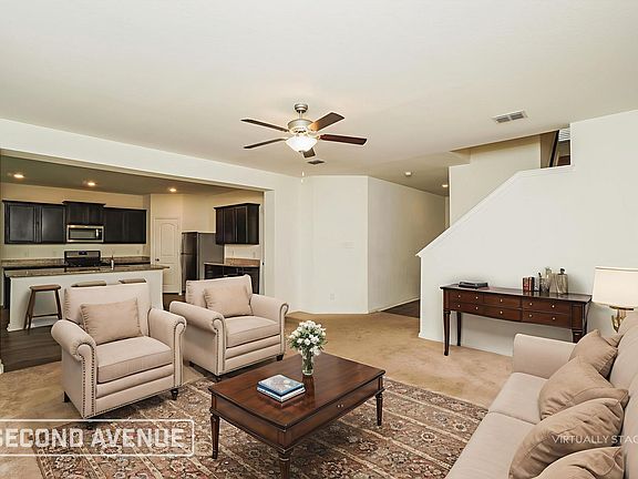 Welcome to this spacious two-story, 4-bedroom, 2.5-bath, 2-car garage home for rent in a San Antonio suburb, featuring full-size washer/dryer connections and an open-concept layout ideal for entertaining. The chef-ready kitchen with pantry boasts energy-efficient appliances, granite countertops, and designer wood cabinetry with elegant crown molding. Upstairs, you'll find four generously sized bedrooms with ample closet space, including a sprawling owner's suite with a luxurious en-suite bath featuring a soaking tub, separate shower, and massive closet. A fully fenced, oversized backyard completes this impressive home. Professionally managed by Second Avenue. Contact us to tour and apply online today!