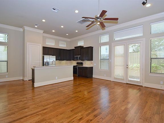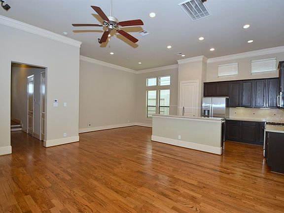 NEVER FLOODED! Bellaire High! Great inside loop location! This charming, delightful home is located in a desirable gated community. Soaring 12 foot ceiling! Wood flooring. Granite kitchen. SS appliances. Kitchen, dining and living on 1ST FLOOR for your convenience! Spacious master suite features curved ceiling with an added/extension room, perfect for a sitting area or a great study space or nursery; his and her roomy master closet; plus 2 more bedrooms all are on 2nd floor. The huge 4th room has its own full bath & closet on 3rd floor and can be used as game room. Sprinkler system. Sizable back yard and side yard. Texas Medical Center, Galleria & Downtown all are merely minutes away! Call today!!