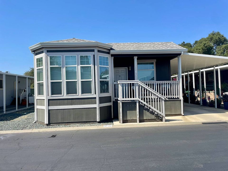 Beautiful 2018 Champion home in the all-age community of Colonial Estates! This modern 3 bedroom, 2 bathroom home offers 1,404 sq. ft. of open and stylish living space with tall ceilings throughout and a warm, inviting feel. The stunning kitchen features modern gray cabinets, quartz countertops, and plenty of storage, perfect for everyday living and entertaining. The floor plan flows seamlessly into the dining and living areas for a bright, open feel. The spacious primary bedroom includes an en suite bathroom with a double-sink vanity and great layout. All bedrooms are generously sized. Enjoy a low-maintenance yard, darling front porch, large carport, and storage shed for added convenience. Located at 3118 Red Coat Lane in Colonial Estates, an attractive all-age community, this home offers modern features, comfort, and easy living-move-in ready and a must see! serial# 009000HA003559A/B