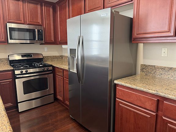 Property includes open concept living room w/ separate dining area. Kitchen includes stainless steel appliances including new refrigerator and new microwave, granite countertops, and upgraded cabinetry. Master bedroom is located on its own floor for maximum privacy, walk-in closet, duel sinks, separate shower & large soaker tub. Two nice-sized rooms on top floor w/ large closets and full bath. In-unit laundry with washer & dryer included. Two car attached garage and plenty of guest parking. New AC unit installed in May 2025 and fresh paint throughout. Quiet gated community includes clubhouse/BBQ area/swimming pool/spa. Neighborhood is next to Pala Community Park w/ walking trails, field, playground, beach volleyball and tennis courts. Prefers no pets due to new carpeting, but can discuss options with additional rent. Temecula School District - Red Hawk Elementary, Erle Stanley Gardner Middle School and close to Great Oak High. No smoking. Please do not bother current tenant.