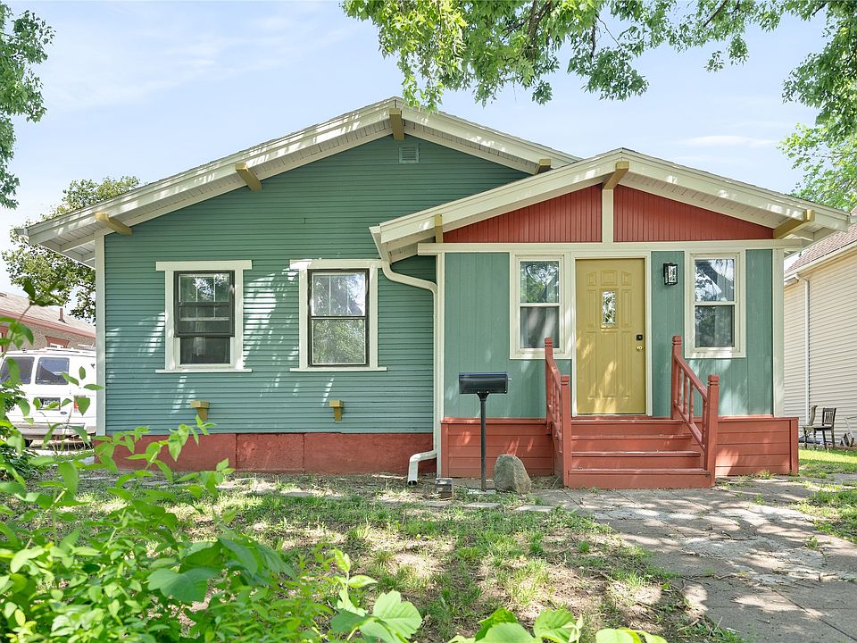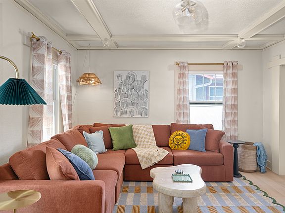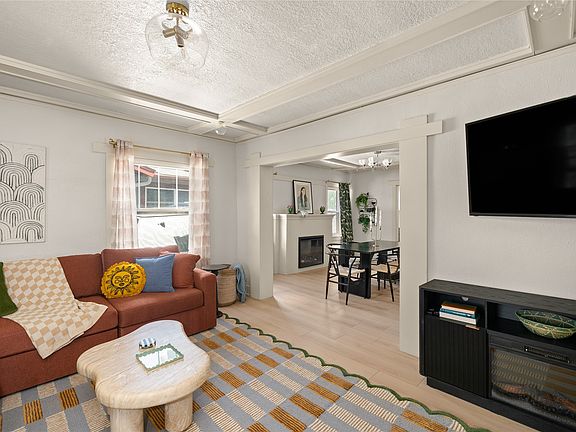 Welcome to this thoughtfully updated bungalow that blends clean, modern finishes with timeless character. This spacious 2-bedroom, 1-bath home offers an open, comfortable layout designed for everyday living. A dedicated office nook creates a quiet, functional space for work or study. The dining area—anchored by a cozy fireplace—sets the tone for relaxed meals and small gatherings. The refreshed kitchen shines with brand-new appliances, making cooking both easy and enjoyable. Exposed ceiling beams add warmth and personality throughout, giving the home a distinct, inviting feel. A truly special home that’s ready for its next chapter.