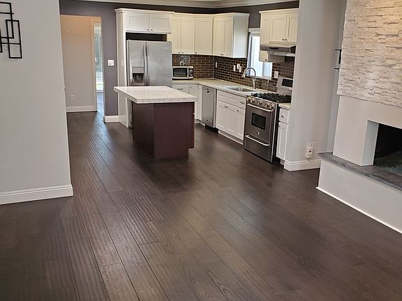 Enter into beautiful wood vinyl flooring, a charming fireplace, and a spacious open-concept layout. The gourmet kitchen features polished granite countertops, stainless steel appliancesincluding refrigerator, stove, dishwasherand an oversized single sink with a sleek updated faucet. A stylish center island offers additional prep space and is perfect for entertaining.